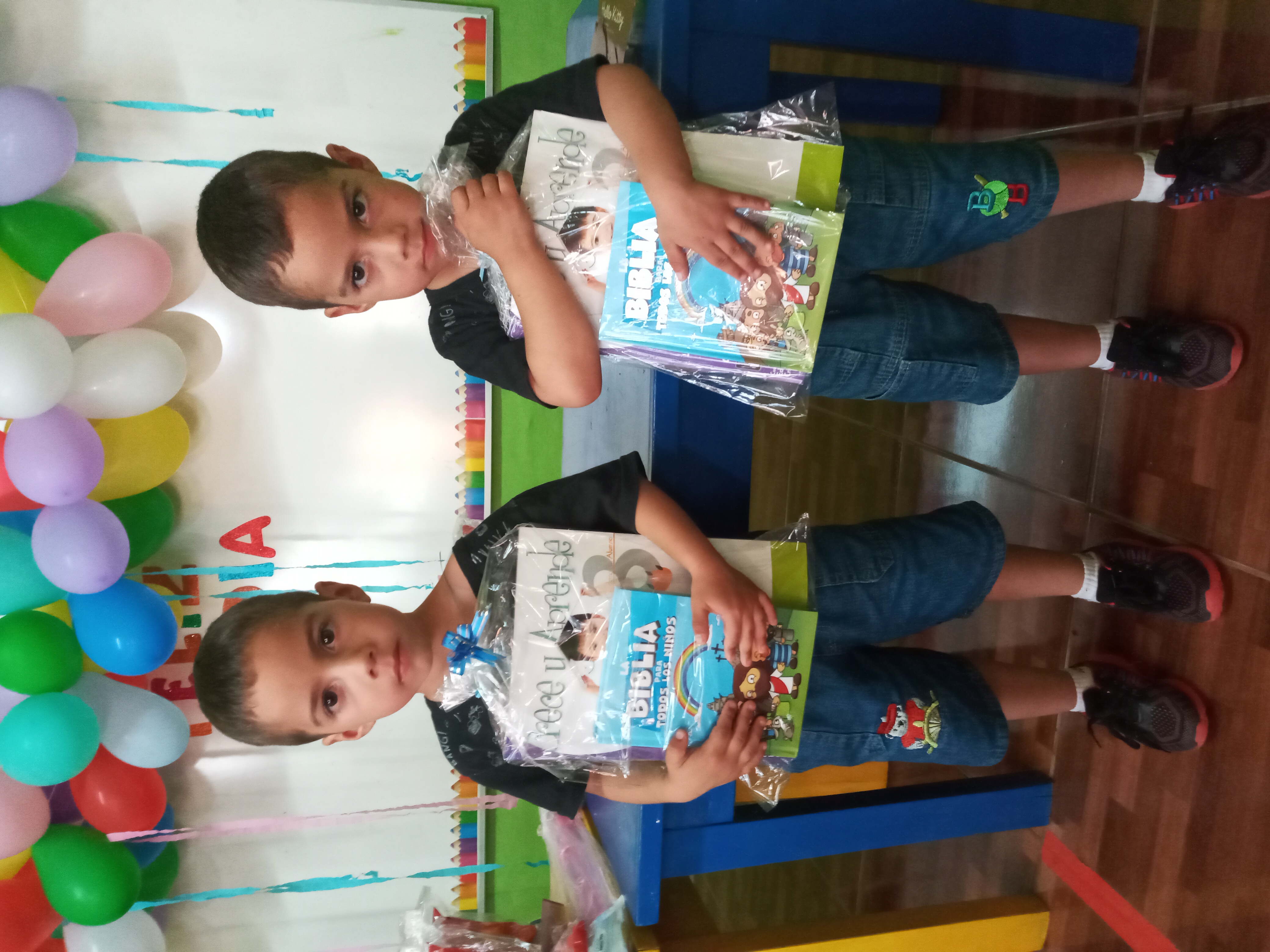 Thanks to your donations, the children pictured here were each given Bibles of their own as well as other little treats to honor the day.
